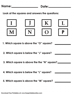 Above & below worksheets Kids are asked to look at the shapes in the box and then to answer a series of questions about which shapes are above and below others. These worksheets are appropriate for Preschool and Kindergarten Math. Navigate to Preschool and Kindergarten Math to see the whole curriculum.
